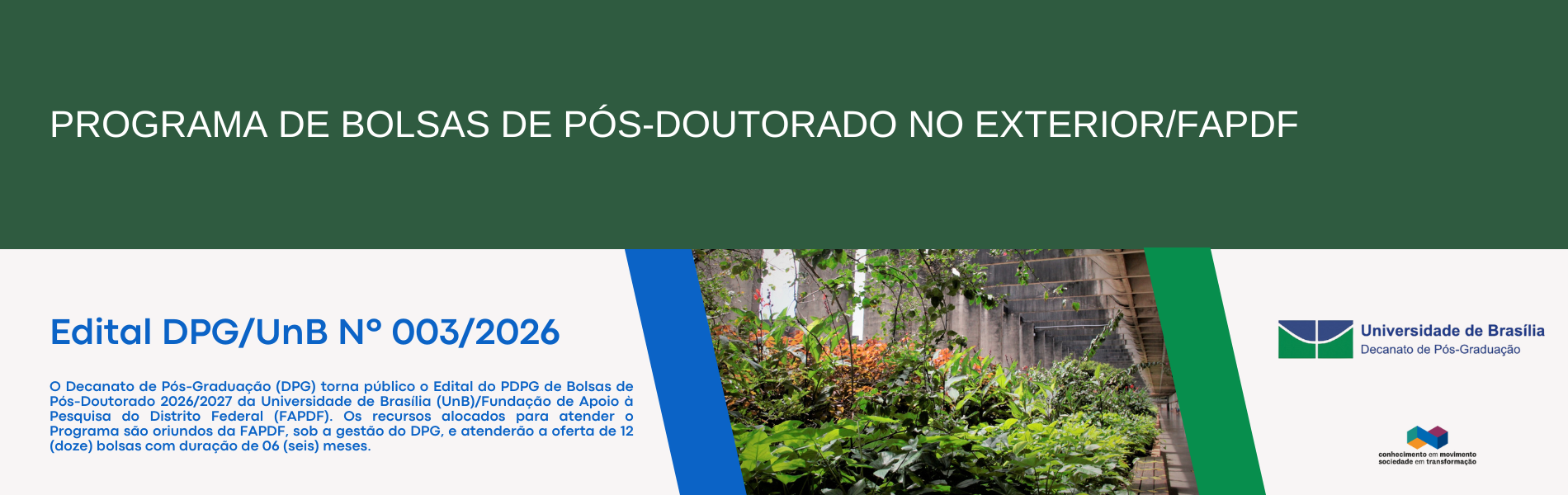 Edital DPG/UnB Nº 003/2026 – PROGRAMA DE BOLSAS DE PÓS-DOUTORADO NO EXTERIOR/FAPDF